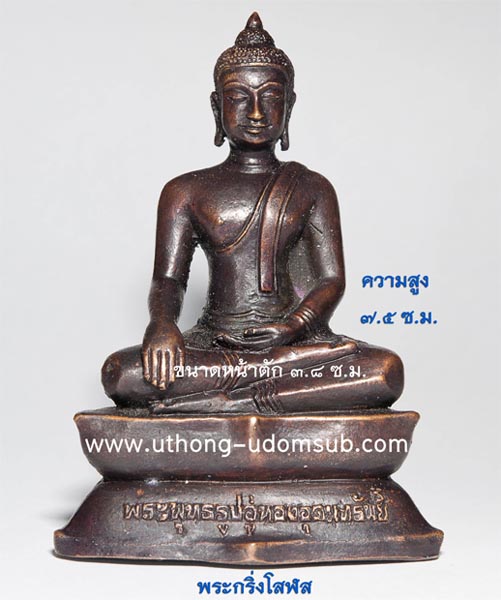 ขนาดหน้าตัก ๓.๘ ซ.ม. ความสูงจากฐานถึงเกศดอกบัว ๗.๕ ซ.ม. |